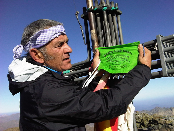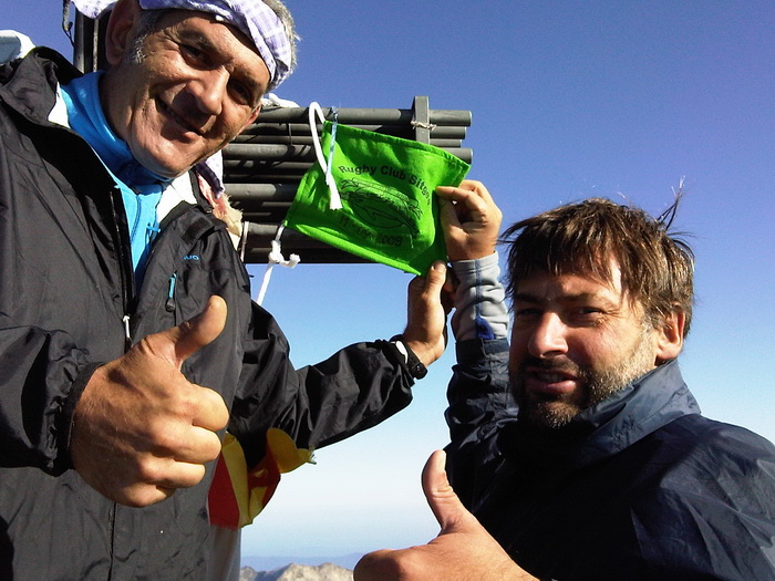 El passat divendres 11 de setembre el Didac Gilabert i el Loren Reixach (poso primer el Didac per allo de l’edat) varen portar l’escut del Rugby Club Sitges al cim de la Pica d’Estats (Cim més alt de Catalunya)